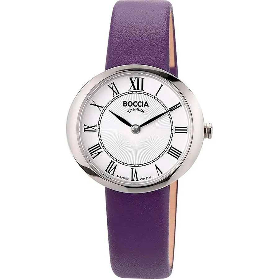 Представляем изысканные женские кварцевые часы, элегантно сочетающие в себе точность и стиль. Сердцем этих часов является надежный кварцевый механизм, обеспечивающий безупречную работу центральных часовой и минутной стрелок. Белый циферблат, обрамленный корпусом из гипоаллергенного титана, создает атмосферу чистоты и изысканности. Римские цифры, служащие индикаторами времени, добавляют классический акцент, подчеркивая вневременной характер аксессуара. Корпус, диаметром 30 мм и толщиной всего 7 мм, идеально подходит для женского запястья, обеспечивая комфортное ношение. Фиолетовый кожаный ремешок шириной 14 мм с классической застежкой надежно фиксирует часы на руке, добавляя образу нотку утонченности. Защиту циферблата обеспечивает сапфировое стекло, устойчивое к царапинам, гарантирующее безупречный внешний вид на протяжении длительного времени. Водостойкость WR 50 позволяет не беспокоиться о попадании влаги при мытье рук или во время дождя, делая эти часы практичным и стильным выбором для современной женщины.
